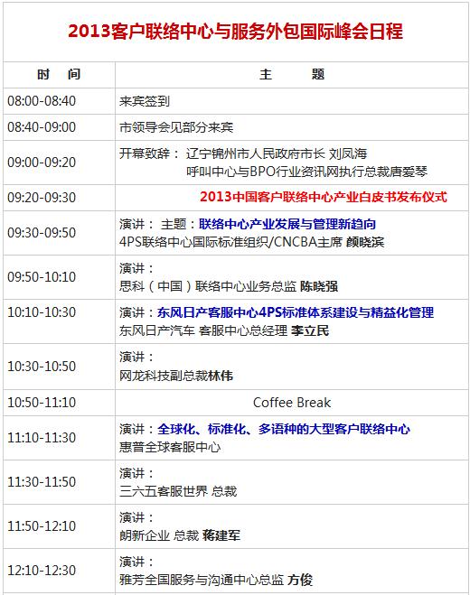 《2013客户联络中心与服务外包国际峰会》 (9月26日09:00-17:30)