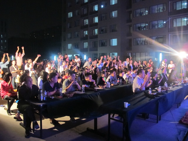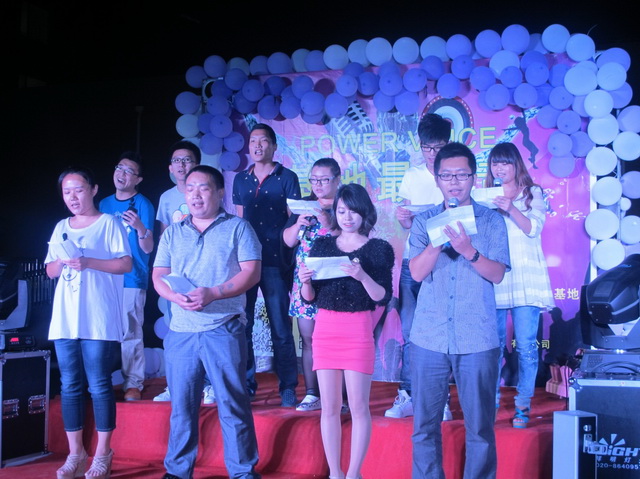 自7月份以来,每周周末在基地的一号公寓与二号公寓之间的空地之上都会上演一场精彩的K歌比赛,本次比赛我们精心组织了一支强大的评委团,他们是张亚平、李琪、李娜、陈常华、张龙龙,在他们专业的评选下,经过了连续4场初赛的比拼后,共有20名选手晋级复赛。在复赛中,各位选手激烈角逐,来自山东万声通讯实业有限公司、中国大地保险、潍坊中动动漫培训学校和基地餐厅共10名优秀选手脱颖而出,共同争夺基地最强音。