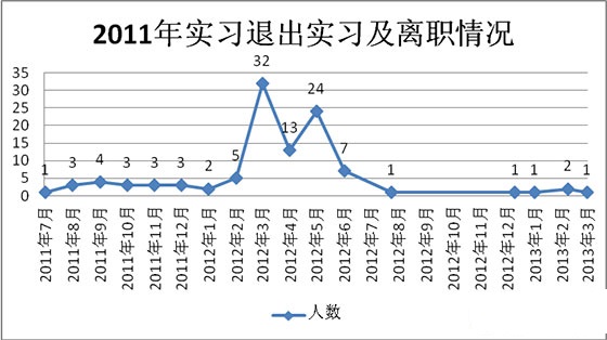 本人2011年5月到任后与班子成员一道通过实施人才培育工程,辅以各项配套管理,当年呼叫中心的旅客满意度和机票销售量稳步向高,员工队伍较为稳定,离职总人数和离职率明显下降。2011年底工岗人数为690人,全年离职人数124人,离职率为17.9%,比2010年度下降了12%,降幅达40%。2012年,继续坚持做好识才选才育才工作,员工保持较好的工作积极性和创造性,单位凝聚力进一步加强,各项基础管理工作进一步提升,旅客满意度和销售量再创历史新高。2012年底在岗人数增加至857人,全年离职人数157人,离职率为18.3%。