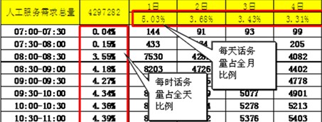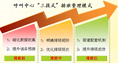 全面做好年、月、日以及重大节假日话务数据收集,并关注业务或系统对话务产生影响的数据变化,为话务预测提供基础支撑;同时收集员工排班的共性和个性需求信息,受制于地域、员工习惯不同将直接影响排班班次设计以及排班轮班模式的差异化;例如:某呼叫中心大部分员工每天花费在上班路程时间在1-2小时或以上,但另一个呼叫中心提供集中宿舍,员工每天花费在上班路程时间在半小时以内,那么这两个呼叫中心班次以及排班模式将会有明显的差异。