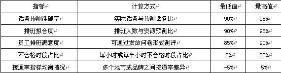 结合排班过程以及运营指标的要求,排班成效评估因子应该包括预测准确率、排班吻合度、员工满意度以及指标均衡度;以笔者所在呼叫中心为例,排班成效应该涉及以下5项因子: