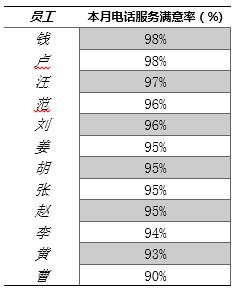 | 同比(环比)变化 | 条形图 | ![]() | a. 话务量每月同比、环比 b. 客户满意度指标同比、环比 | |