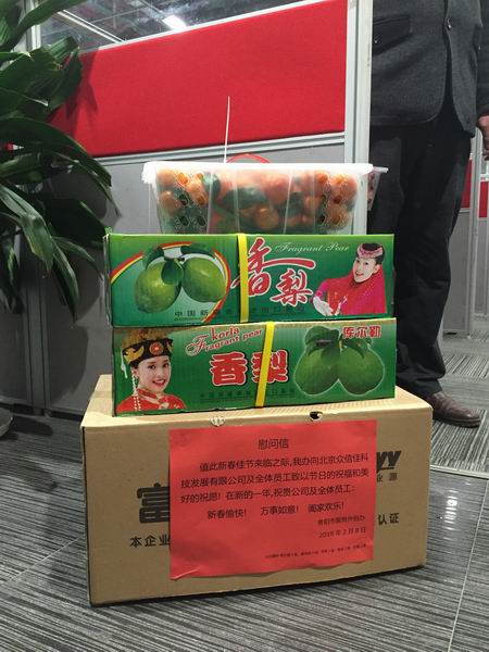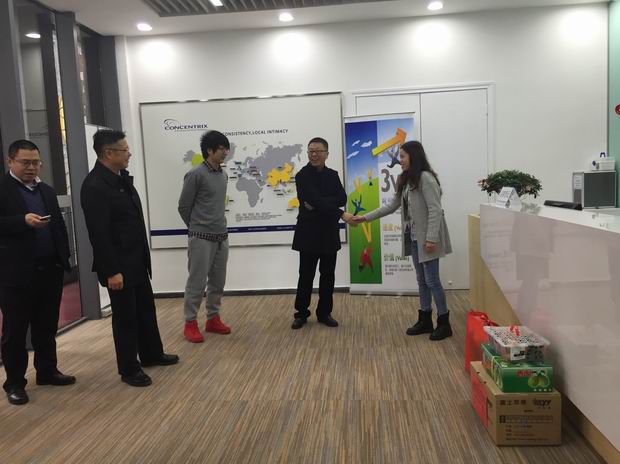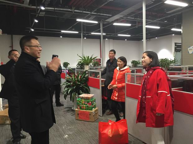 2016年2月8日,大年初一上午9点30分,市人大副主任、市服务外包及呼叫中心产业发展领导小组常务副组长向阳带队,来到贵阳呼叫中心与服务外包示范基地,慰问了在春节期间正常运营上班的当当网、聚盟、普惠快信、华云、众信佳、惠普(维护)的六家企业,看望了坚守在岗位上的300余名员工,给他们送去了苹果、香梨、贡橘,以及酸枣糕、瑞士糖等物资近百余箱(件),为入住我市的服务外包及呼叫中心企业送上市委、市政府的亲切关怀、节日祝福。