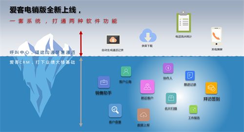 爱客CRM电销版打破了传统呼叫中心的地域限制,让企业通过互联网接入即可进行线上、线下双渠道拓展客户的同时,更能直击企业通讯痛点,帮助企业有效解决话费成本高、流失率高、运营成本高和回访率低、接通率低等一系列运营难题。