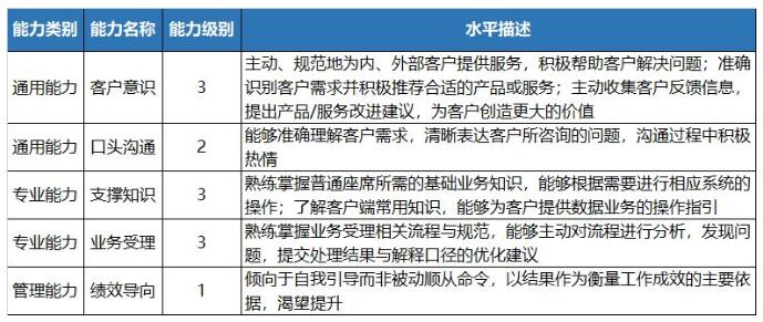 能力级别:1:入门级;2:熟练级;3:专业级;4:资深级;5:标杆级