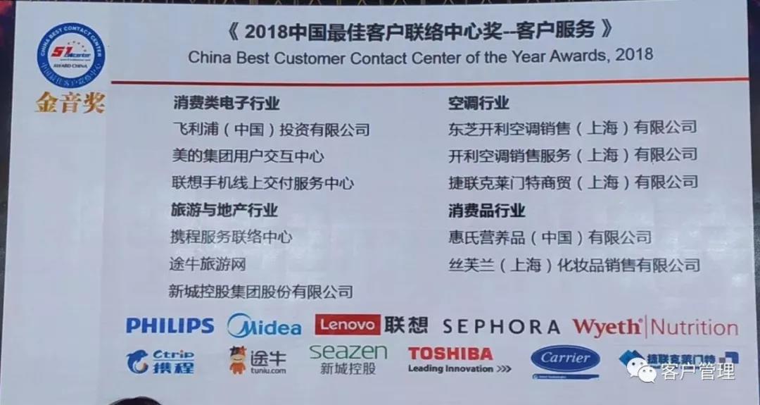 以下为2018年度中国最佳客户联络中心与卓越客户体验榜单: