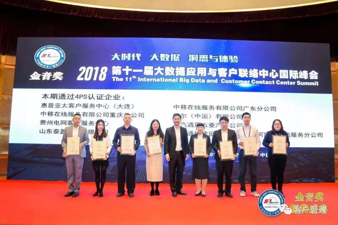 峰会期间,颁发了2018“金音奖”获奖榜单,并为戴尔大中华区、中移在线广东分公司、中移在线重庆分公司、中移在线河南分公司、贵州电网、上汽通用五菱、山东泰盈、河南通服等8家通过4PS国际标准认证的单位颁发了4PS国际标准认证证书,为来自松下、富士康、平安银行、交通银行等企业的新一批4PS认证协调员和4PS认证外包管理师颁证。