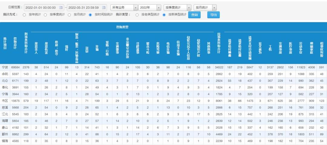 2021年,我市热线接听量136866通,居全省首位。1-5月,全市接听来电69584通,同比2021年增长55.4%,其中新增用户2.3万人。从来电咨询分类事项看:共解答劳动争议法律咨询11907通,同比2021年增长102.9%;共解答请求支付劳动报酬法律咨询5842通,同比2021年增长202.2%;共解答消费者权益纠纷法律咨询1942通,同比2021年增长403.1%;共解答请求给付赡养费法律咨询186通,同比2021年增长466.6%。
