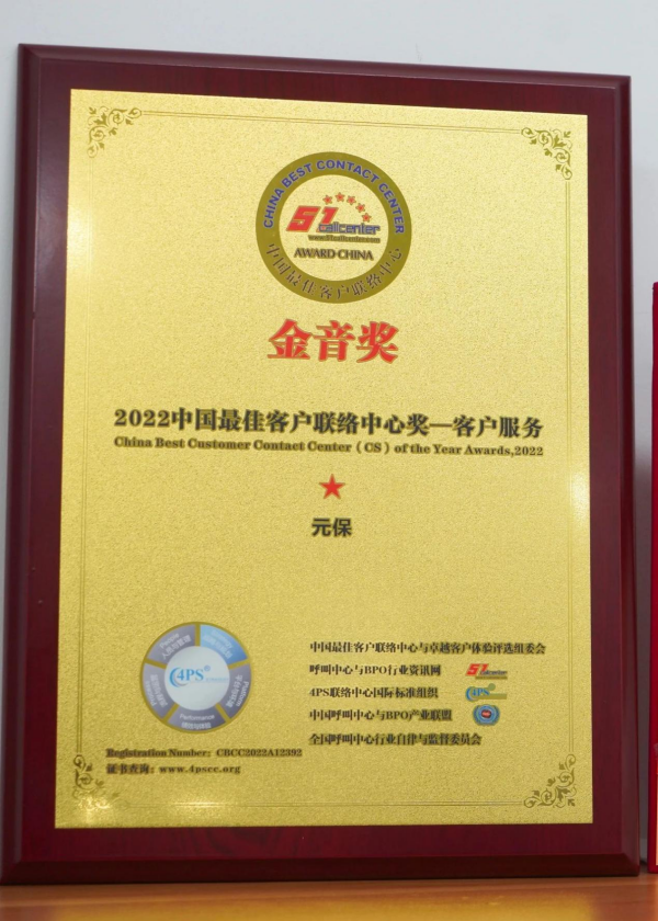 近日,由工信部、人社部等相关部门指导,51Callcenter主办的2022(第十五届)大数据应用及呼叫中心产业峰会暨2022(第十五届)“金音奖”中国最佳客户联络中心及卓越客服体验评选颁奖典礼与国际峰会在上海举行。元保斩获了金音奖—中国最佳客户联络中心(客户服务)奖,成为了此次获奖者中唯一一家互联网保险企业,与惠普、携程、一汽-大众等一同获此殊荣。