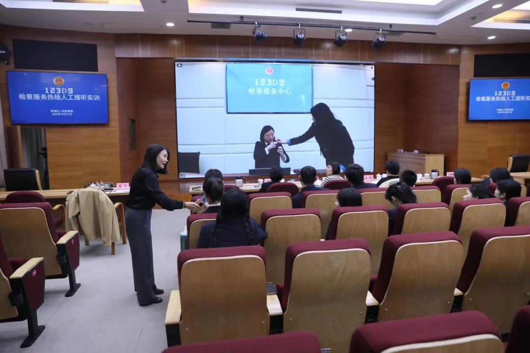 12309检察服务热线,是检察机关联系群众、倾听民意的重要桥梁,每一次电话接访都承载着群众的期待与信任。为践行新时代“枫桥经验”,进一步提升高阶段检察官助理信访接待服务能级,确保热线服务“接得通、答得准、办得好”。10月31日下午,青浦区人民检察院邀请12309检察服务热线人工接听实训团队,组织开展了电话接访实训活动,通过“理论+实战+复盘”的模式,让参训学员在沉浸式体验中锤炼技能、积累经验。