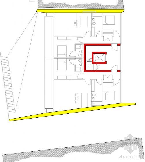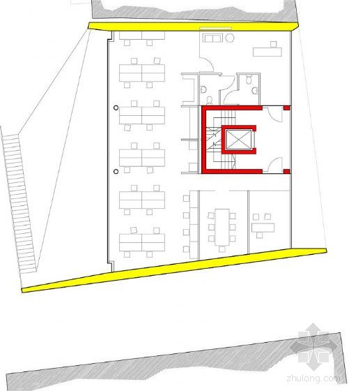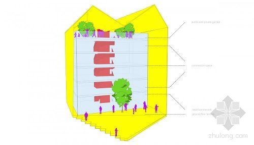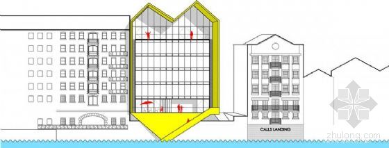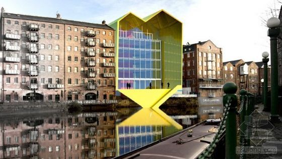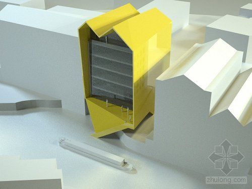 P+HS 事务所的黄色几何商业大厦是“36呼叫中心”设计竞赛的6个入围项目之一。该比赛由“developer Citu”杂志监督。设计者要在英国Leeds的Aire河北岸的一个现有狭窄的停车场上设计出“富于灵感的地标性建筑”。由于基地是仅存的极少数海滨之一,所选择的设计坚持设计竞赛的要求:标志性、创造性和可持续性。