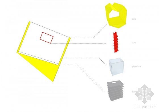 设计有四个要素:黄色皮肤,玻璃箱,地板和核心。P+H事务所解释道:明亮醒目的黄色皮肤外观,“作为表面"标志性"包装,并以此将建筑置于周围的环境中。
