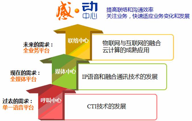 金融联络中心的发展终将从单一的电话平台,发展为融合入核心业务的联络平台。而联络中心这一发展历程伴随IP通讯、物联网、云计算等技术革新将经历三个阶段:从过去的“通讯平台”,到目前的“媒体平台”,逐步发展到全面融合业务“联络平台”。