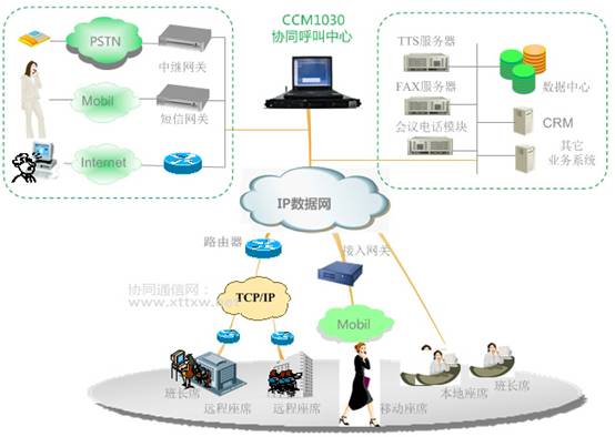 Mazal CCM1030与本司CCS1000结合即可组成强大的、一体化的综合通信平台-Mazal协同通信平台。既实现了综合客户联络中心,又实现了多业务综合通信服务体系,如下: