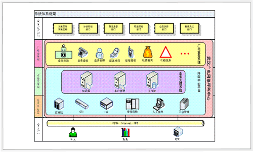 广电业务层是具体业务的功能表现,包括业务咨询、业务查询、业务受理、建议投诉、故障报修、收费查询等。