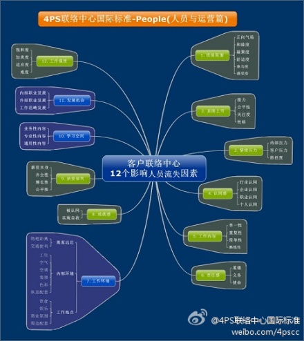 员工流失率是近年来客户联络中心行业讨论最多的一个问题,人员如何稳定,其关系到的因素有很多.根据4PS联络中心国际标准中的People(人员与运营篇,它把客户联络中心人员流失率主要影响因素分为12个,包含: