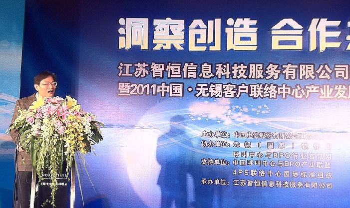 12月7日51Callcenter 记者报道:昨天上午,由中国电信股份有限公司江苏分公司主办,无锡(国家)软件园、呼叫中心与BPO行业资讯网(51Callcenter)协办,中国呼叫中心与BPO产业联盟(CNCBA) 、4PS联络中心国际标准组织支持,江苏智恒信息科技服务有限公司承办的2011中国.无锡客户联络中心产业发展高峰论坛暨江苏智恒公司(中国电信江苏外包呼叫服务中心)揭牌仪式在无锡新区希尔顿酒店隆重举办。