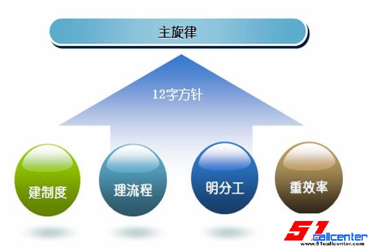“制度”是呼叫中心运营的框架,同时制度的贯彻考核也是构成绩效体系的基石。“流程”是呼叫中心运营的脉络,高效、顺畅的流程能够有效地理顺各项工作从开始处理到圆满处理完毕的过程,从而保证了工作质量。“分工”是呼叫中心运营的机制,因为“工作有不同”,所以“岗位必须有分工”,良好的分工模式能够在加强协作的基础上,锻造出一支高效、团结的团队。“效率”是呼叫中心运营的原则,各项工作的完成必须遵循效率原则。