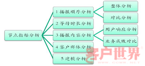 在IVR优化分析系统中,节点分为两类,一类是业务节点,一类是详细节点。业务节点分析是分析语音菜单结构的流量和冲浪状况,在统计意义上重现客户的行为,可以了解哪些业务节点设计不合理,哪些业务节点需要变换位置或重新组合,哪些业务节点的播报不清楚等。详细节点分析则可以从物理节点层次查看客户的行为,分析客户失败的原因。