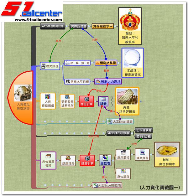 客户满意程度难以量化是以客户服务为主的呼叫中心普遍存在的问题,通常会以服务水平的高低来衡量,拥有达标的服务水平%及最低的服务水平%离散率是精致化管理的完美境界。如何达到服务水平%的平稳,以最少的人力成本创造出最高的客户满意度是永不言和的博奕,亦可说是需要不断斟酌取舍的中庸之道。人员储备不足,即使有极低的服务水平%离散率,但服务水平不高也同时意味着客户不甚满意,而人海战术即便救得了一时的火,维持了短期极高的服务水平,如果人员因班务调动频繁而埋下离意,不可控的结果将伺机而发。因此;如何兼顾服务效益、人性、成本与管理各面向的平衡,进而达到最终服务水平%的平稳,是呼叫中心营运的最大挑战。如同至高无上的皇冠由各种金银珠宝所组成,有权力与能力掌管一切的王者才够资格拥有。