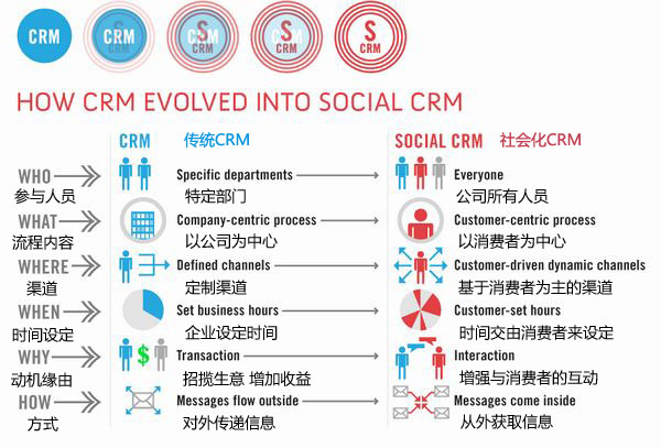 社会化CRM区别于传统CRM的不同之处: