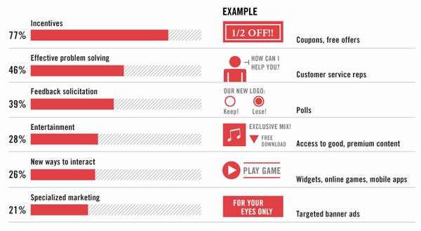 1. 奖励回报,如优惠券或免费礼品(77%)