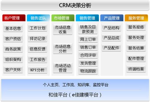 和佳软件在装备制造行业有着丰富的管理和实施经验,在此有利基础之上和佳为苏福马制定出了一套切实可行的客户关系解决方案,帮助企业充分掌控客户的需求;规范销售、服务人员的拜访业务流程;充分分析并挖掘企业商机;对销售市场活动费用进行严格管控。为其解决了客户关系管理上存在的问题,诸如营销市场的主要业务数据通过系统外手工填报,导致业务信息数据交互和共享不畅,很多有价值的数据丢失;无法提前获得市场预警信息,无法实时获取一线市场数据,不利于统计分析;与客户的信息交流不畅,使经营决策缺乏准确的数据和信息支撑等等。