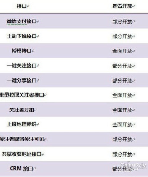 昨日,微信公众平台新版正式公测,新版的最大亮点是大规模开放接口,让个人应用和企业应用跨界融合。在所有接口中,授权、批量拉取关注者、关注者分组、上报地理标识接口将全面开放;而包括CRM、微信支付、主动下推、一键分享、共享收获地址等在内的接口属于部分开放。CRM之所以作为部分开放接口,是为了避免商家购买大量的手机号码,全部导入公众账号,骚扰用户。