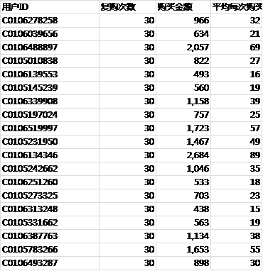 在店铺后台或者发货插件,都能导出一段时间用户下单的数据。我们可以记录下用户相关信息:用户ID,购买日期,花费实际金额还有其他。简单用户管理,实际上只需上述的三个指标。