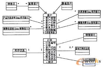 图3所示为订单管理模块类图:此静态类图显示了各个静态类之间的关联关系和各个类的属性。客户和销售发票是一对多的关系,客户和产品信息表单是多对多的关系,订单和库存信息是一对一的关系等,多数信息库是来自于其他系统,因此没有列出它们的属性,本图中主要列出了客户与订单的属性和操作。