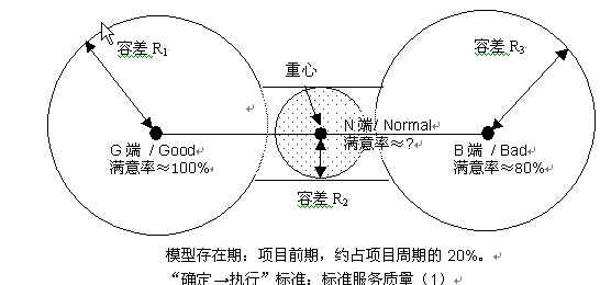 根据以上各项条件的特性和说明,以下我们结合质量管理的实际情况,借用几个简单的物理模型来对Q,M工作进行一系列比较形象化的阐述。我们可以把“标准服务质量”理解、想象为一个服务质量模型实物的重心,该模型的重心处于什幺位置,就表示当前的服务质量处理什幺层次,而根据项目进行对服务质量要求的变化,我们也应该明白当前QM工作需要努力的就是把重心往模型变化趋势的方位集结。