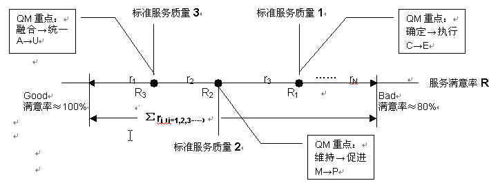 说明:随着项目进行,服务质量满意率R在不断递增,作为分子、分母的两个数值都实时变化,其中分子数值因CSR而异(人员属性),分母数值由项目的执行程度决定(项目属性),两者都呈现出上升的良性趋势。QM要控制分子的增幅高于分母的增幅,这样才能使服务质量满意率R保证增势;