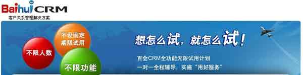 信息化应用,尤其是CRM这样的管理类信息化应用,因为涉及的管理流程复杂,使用人数自上而下数量众多,而且往往需要较长时间来进行磨合,所以在企业内推行时往往存在一系列的问题。市面上的各种CRM产品,虽然大多有免费试用版本,但是一般都会设定一个固定的试用时间。但这个时间的设定往往是从厂商在商业角度上的需要进行预先框定的,根本无法真实满足不同需求客户的试用需求。企业的业务内容不同,销售方式不同以及管理和使用人员对客户关系管理的认知程度不同,就决定了试用的期限存在很大的差异。有些企业本身已经有非常完备的客户关系管理的知识基础,各个部门对于CRM的价值和使用方式也已经有了清晰的认知,这种企业可能只需要完成系统设置,并且明确相关的制度,即可开始在内部推行CRM管理机制了。而有的企业,可能因为业务模式复杂的原因,或者管理和使用人员还需要先行熟悉系统如何与其业务运行接轨的,这种企业就需要比较长的时间来试用产品。如果厂商采用一刀切的方式,设置固定的试用期限,那么这部分用户可能就因为根本还没把CRM用起来,就被挡在门外了。不设固定期限,可以让企业充分地对CRM系统从机制到运行方式的各个方面有充足的准备时间,并且能够在试用过程中发现问题,只有当他们完全能够把CRM作为一种常规的销售管理工具予以熟练运用之后,他们才可能更加深刻地认识到CRM所带来的利益和便利。百会CRM无限试用计划不设置固定的试用期限,用户可以根据自己的需要,申请延长试用期限,并在试用过程中,由百会的专职人员进行一对一的使用辅导,根据企业需求量身定制各种设置和功能,以保障用户能够充分而完整的体验百会CRM产品。