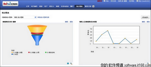 在整个的销售过程中,百会CRM还有一个最大的帮助就是可以让你随时根据需求来设置统计图表,方便查看整个销售过程中的重点商机所占比例,以及近期商机阶段数据对比。图表方式的呈现能够让数据更直观,利于销售工作的按时进行。