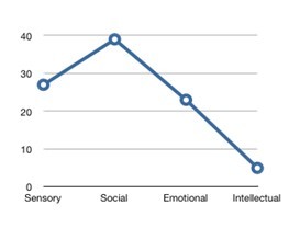 我想再加第三条:你必须选好自己想要争取的客户——根据他们所想要的体验的描述。如果将酒店的快乐触发点分解成感官,社交,情感和智力,那么你就能知道这些快乐触发点分别适合目标客户的哪些需求了。让我们看看Dubé在2002发布的一项研究结果: