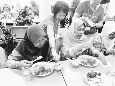 在新加坡,一家乐龄中心为老人提供用餐服务。