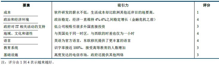 表:爱尔兰服务外包的吸引力