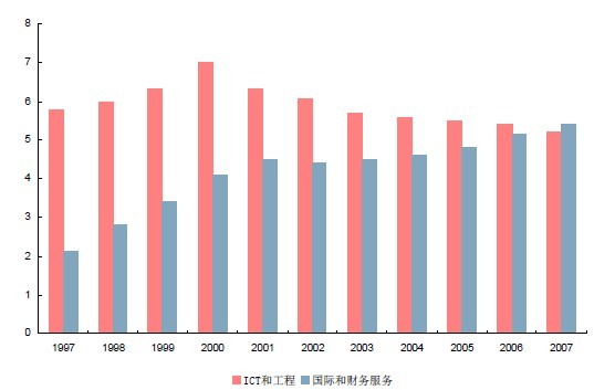 图:1997-2007爱尔兰外包部门雇员