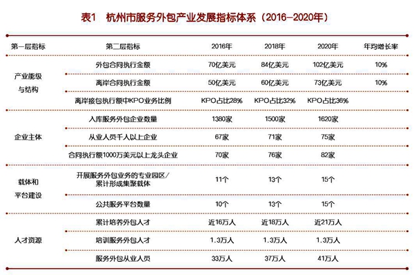 到2020年,杭州市的服务外包产业结构和行业价值进一步优化提升,形成产业特色鲜明、融合创新驱动显著、领军企业国际竞争力明显提升、产业集聚效应明显、发展环境优良的服务外包产业生态系统,将杭州建设成为长三角服务外包集群核心区、全国创新融合发展示范区、全球知名服务外包目的地,确立“最具价值&活力服务外包城市”的杭州服务外包城市品牌。