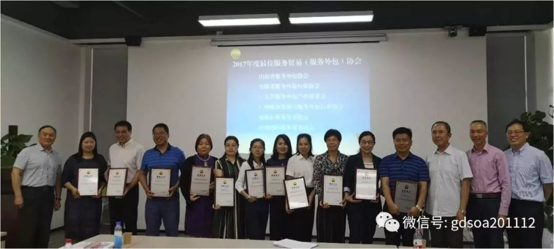 紧接着,大会进行了2017年度“最佳服务贸易(服务外包)协会”颁奖仪式。为推动服务贸易(外包)产业的发展,引导全国各地服务贸易(外包)协会的工作,产业联盟于今年3月启动了2017年度“最佳服务贸易(服务外包)协会”的评选认定活动,评选过程严格遵循公平、公正、公开的原则,经过专家评审,最终从全国30多个省市的协会中决出了12家获奖协会。