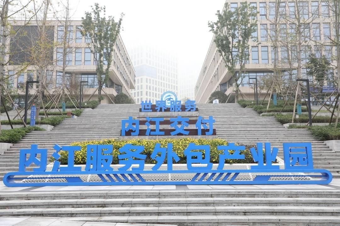 “世界服务 内江交付”标语醒目(图据园区)