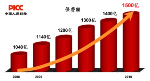 人保财险年前对外披露,截至2010年12月24日,人保财险保费突破1500亿元,在全球可比上市非寿险公司中排名攀升至第8位。这是继2008年保费突破1000亿元、2009年突破1100亿之后,人保财险再次实现了中国非寿险业的历史性跨越。