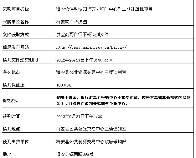 海安软件科技园“万人呼叫中心”二期计算机项目 |