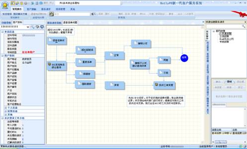 系统提供了交互性强,使用简单的推送式解决方案,引导客服代表一步一步的进行客户的需求分析,直至客户需求的解决。此过程中几乎所有流程及功能均是系统自动推送到客服代表的桌面。