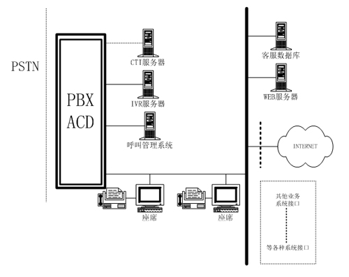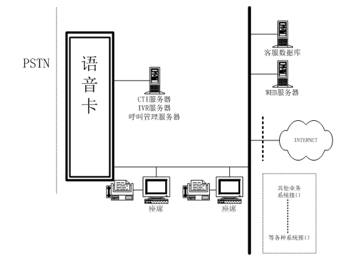 基于交换机式的呼叫中心的硬件架构如下:
