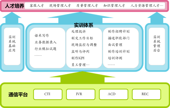 为落实教育部关于职业教育"实训教学、工学结合"的指导思想,实现职业教育办学目标,建立以市场需求为导向,加强学生职业技能、综合素养和实践能力的培养,节约学校的实习成本;降低企业的用人风险,积极推进学生就业率,增加校企的创收机会。大唐融合结合大中专院校服务外包类专业,推出呼叫中心实训系统。