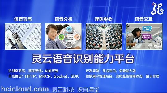 灵云语音识别能力平台的推出,是顺应市场对大规模语音转写能力的强烈需求,更是捷通华声作为中国智能语音领军企业应尽的职责。捷通华声作为国内最早从事中文智能语音研究与应用的企业,十几年来,始终坚持自主研究语音合成(TTS)、语音识别(ASR)、声纹识别(VPR)等智能语音交互技术。其中,捷通华声语音合成技术自2001年研发推出以来,在各行业领域中得到广泛应用,拥有在企业级市场超过50%的市场份额;灵云语音识别技术更是经过几年快速的发展,电话端和手机端识别准确率均达到了行业顶尖水平,灵云语音识别能力平台的推出,与灵云语音合成、语义理解能力平台相结合,可为合作伙伴提供完整、强大的智能语音交互能力,形成了完整的灵云智能语音交互解决方案。