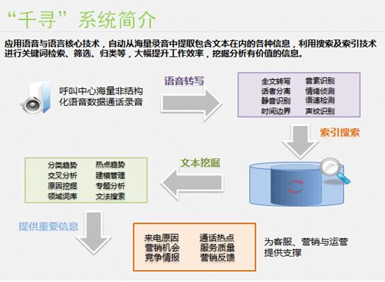 在语音大数据快速发展的时代背景下,普强自主研发的“千语千寻”中文语音分析系统应运而生。它能帮助企业对海量数据挖掘和运用,具有话者分离、语速信息、静音时长、识别可信度、声纹信息、音素信息、时间边界、情绪分析等功能。普强拥有专业的专家咨询团队,可以根据企业特定的行业需求,为企业提供专业的整体数据咨询方案,有效提升销售转换率、全面自动化质检。