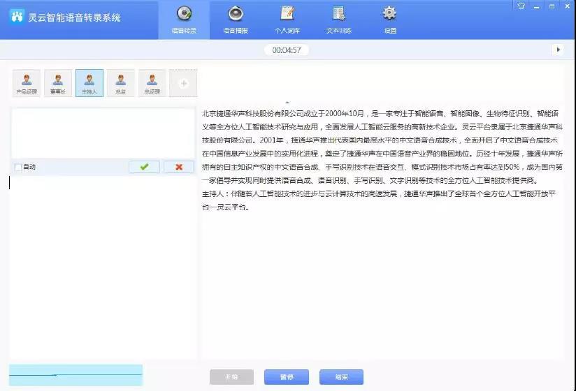 灵云智会系统是捷通华声在政府会议、公检法审讯办案、医疗电子病历等场景应用中打磨出来的智能语音转录系统,包含丰富的功能: