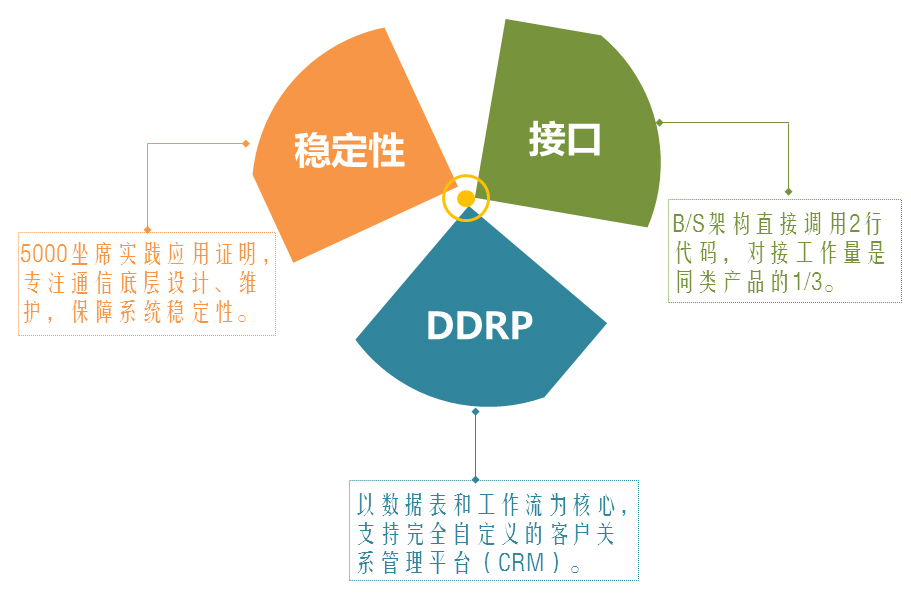 针对中小企业初期可能没有自己的业务系统,深海捷科技提供高度自定义的业务系统“DDRP”。DDRP以数据表和工作流为主体架构,集合各行业销售管理和服务管理的应用特点,支持多业务应用需求。同时,DDRP结合了呼叫中心运营的实际情况,业务开展流程,体现了协作配合无可比拟的优势。